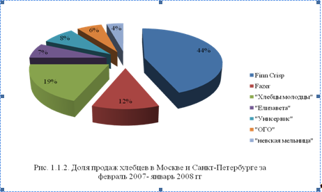 У традиционных продуктов всегда будет свой потребитель – данный сегмент, хотя давно уже не показывает активного роста, будет продолжать присутствовать на российском рынке. Сегмент традиционных сухих хлебобулочных изделий достаточно плотно занят: практически все российские хлебокомбинаты выпускают сухари и сушки. (Рис.1.1.1.).