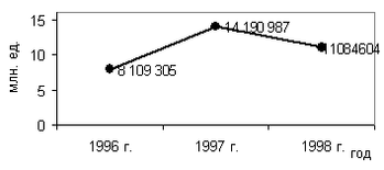 Данный вывод подтверждается тем, что компания не достигла в 1998 году поставленных задач. Произошло падение объема продаж, уменьшение доли рынка компании, в то же время – произошло увеличение прибыли.