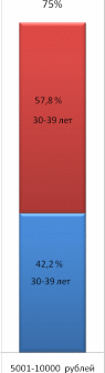 Сегмент II составили потребители с доходом 3001-5000 руб. (21% общего объема выборки). Здесь женщин оказалось чуть меньше - 52%, а их возраст составил 19-29 лет (10,1%), род занятий студенты (5%).