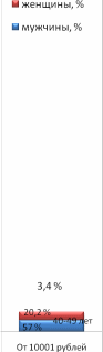 Сегмент III состоял из потребителей с доходом от 10001 руб. (3,4% общего объема выборки). Это самая малочисленная группа посетителей магазина, однако, они также регулярно пользовались ее услугами. Она состояла из женщин (43% общего объема выборки) 40-49 лет (20,2%) и мужчин (57%) возраст которых поровну распределился между двумя возрастными группами - 30-39 лет и 40-49 лет (50%), по роду занятий являющихся предпринимателями.