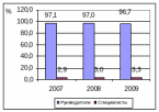 Увеличение количества руководителей связано с изменениями в организационной структуре предприятия и с появлением новых отделов. В целом прирост персонала за 2007 – 2009гг. составил 71 чел. или 9,5 %. Наибольший удельный вес в структуре персонала, как показано на рисунке 2.4, занимают специалисты.