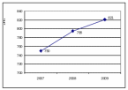 Анализ приведенных данных позволяет сделать следующие выводы. Численность персонала за 2007-2009гг. увеличилась по всем категориям: руководители – (+ 4 чел), специалисты – (+66 чел). В 2007г. на каждого руководителя в среднем приходилось по 33 специалиста, в 2008г. – 32 специалиста, в 2009г. – 29 специалистов (рис. 2.3).