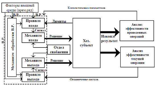 Управляющие воздействия формируются на основе стратегий принятия решений и выражаются в форме решений о переводе сырьевых ресурсов из одной формы в другую, более предпочтительную с точки зрения предприятия, исходя из выбранных критериев, в качестве которых выступает доходность выбранной формы. Профессионально осуществлять подобное управление сырьевыми ресурсами, в рамках предприятия, возможно только опираясь на формализованные методы, позволяющие оценивать ожидания относительно проводимых операций, контролировать (ограничивать) рыночный риск, что позволяет обеспечить системность принятия решений и исключить пагубное влияние случайно принятых решений.