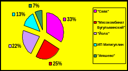 Рис. 3. Распределение долей мясопродукции рынка г. Бугульма