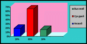 Следующим шагом в оценке конкурентоспособности продукции стал опрос потребителей, который проводился в крупных торговых сетях г. Бугульма, преимущественно методом личного интервьюирования. Было опрошено 100 человек разных возрастов и социального положения, среди которых низкий уровень дохода имеет 19% респондентов. Это в большинстве случаев пенсионеры и студенты, 65% - люди со средним достатком и 16% - с высоким (рис. 4).