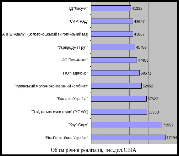 Рис.1.2. Рейтинг груп, що працюють на ринку молокопродуктів (за об’ємами реалізації на рік)