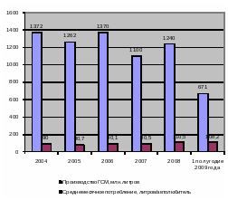 На 2008 год потребление ГСМ составляло в среднем 110,5 литров/месяц, за первое полугодие 2009 года показатели производства ГСМ составили 671 млн.л, а средний показатель 108,2 л./автолюбителя. Следовательно, есть возможность увеличения объема сбыта.