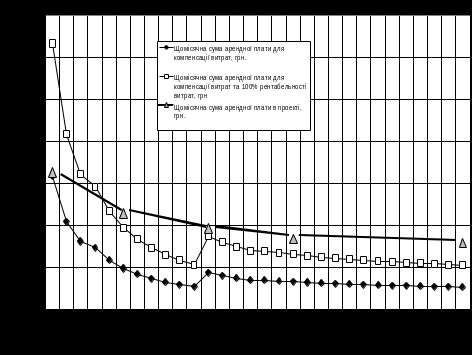 Рис. Е.1. Розрахунок варіантів орендної плати в проекті