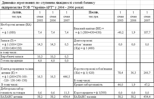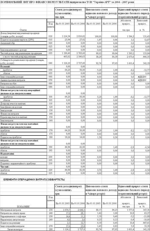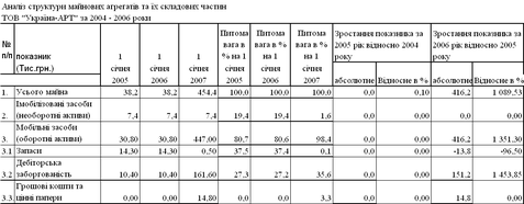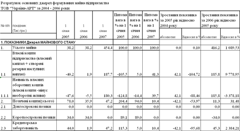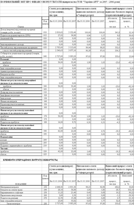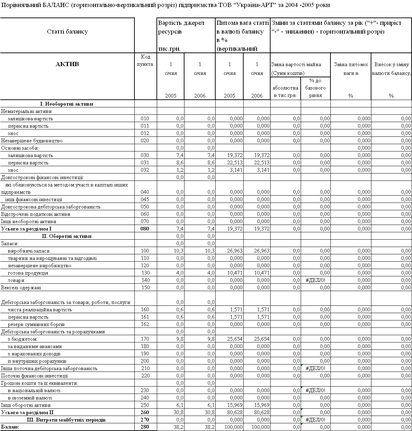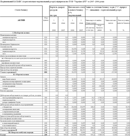 Динаміка балансів та звітів про фінансові результати ТОВ “Україна- АРТ” в “горизонтальному “ та “вертикальному” розрізах
