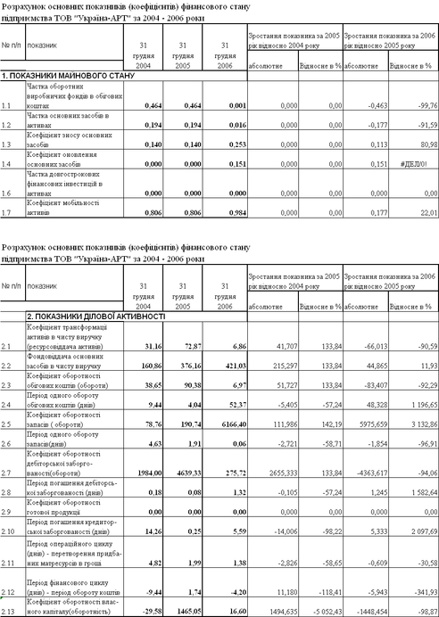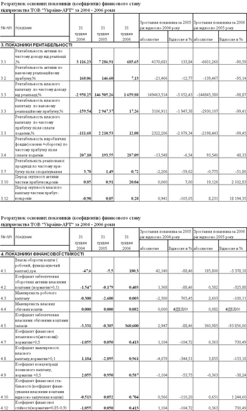 Динаміка показників діяльності ТОВ “Україна – АРТ”
