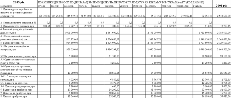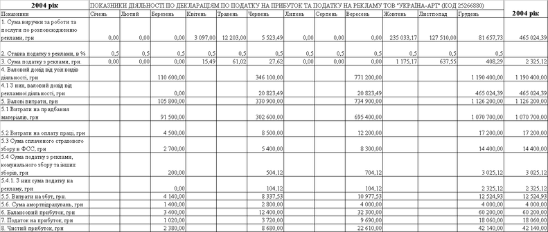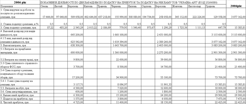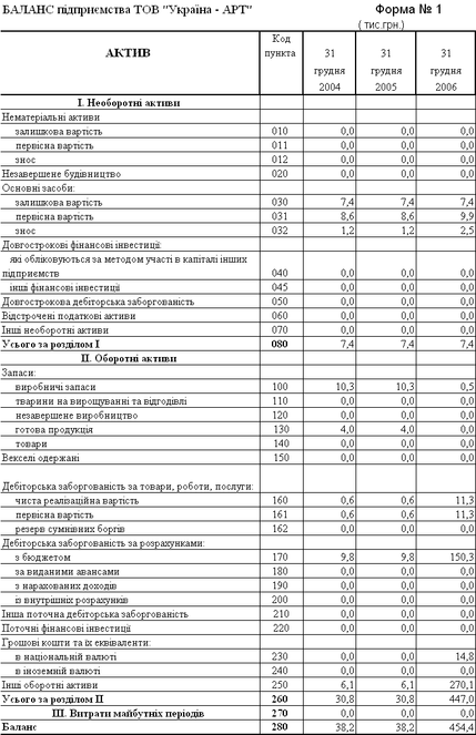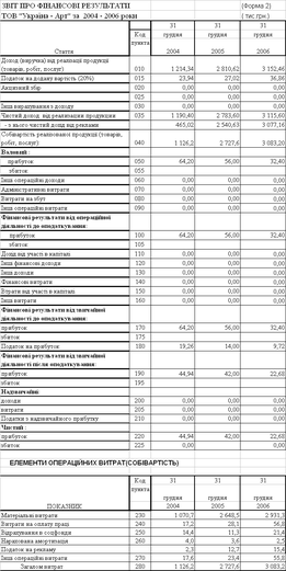 Баланси та звіти про фінансові результати ТОВ “Україна-АРТ”