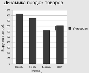 Используя данные из таблицы, было построено графическое представление динамики продаж товаров ООО "Универсал" (см. рис. 2.5.).
