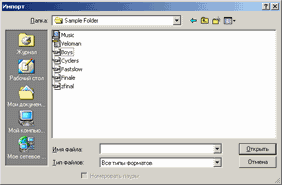 Імпорт кліпів у проект. Для приміщення кліпів у проект варто скористатися командою верхнього меню File | Import | File (Файл | Імпорт | Файл). Після цього відкриється діалогове вікно Import (Імпорт), у якому треба відшукати розташування настановного комплекту програми Adobe Premiere на своєму жорсткому диску. Шлях до нього виглядає приблизно так: Program Files\Adobe\Premiere 6.5. У цій папці варто перейти до вмісту папки із прикладами, називаної Sample Folder (мал. 2.4).