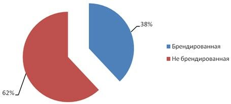 Рисунок 2.1 - Доли брендированной/небрендированной продукции в общем объеме, % (Источник: Ведомости, РБК)