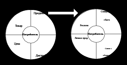 Відзначимо, що споживач не входить до складу комплексів маркетинг микс і маркетингових комунікацій. Ілюстрація показує, що на нього спрямовано вплив елементів комплексів.