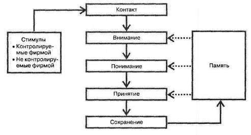 1. Понимание. Если внимание привлечено, сообщение затем мысленно анализируется и сравнивается с информацией, хранящейся в памяти. Специалист по маркетингу надеется, что в результате сообщение будет ясно понято.