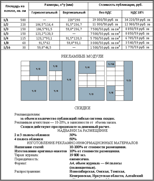 Рисунок Б.1 – Базовые тарифы на размещение рекламы на страницах журнала "Стратегии Успеха"