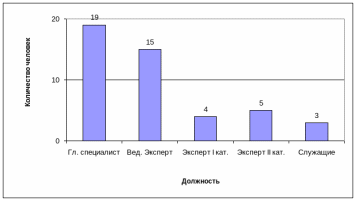 Эксперты II и I категории – это, в основном, молодые специалисты, недавно получившие высшее образование и имеющие опыт работы в маркетинговой службе менее 2-х лет. На этой должности работает 3 женщины и 5 мужчин и их средний возраст составляет 25 лет.