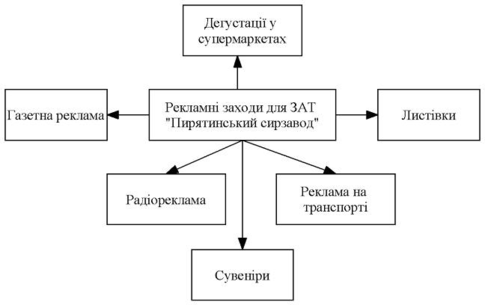 Рисунок 3.1 – Запропоновані рекламні заходи для ЗАТ «Пирятинський сирзавод»