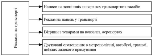 Види реклами на транспорті представимо у вигляді рисунка 1.9