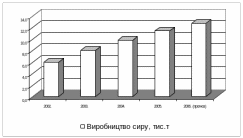 До 2008 року ЗАТ «Пирятинський сир завод» постійно нарощував виробництво основного виду продукції – твердих сирів (рис. 2.3).