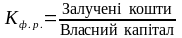 Коефіцієнт фінансового ризику показує співвідношення залучених коштів і власного капіталу. Цей показник розраховується по формулі: