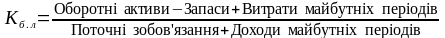 Коефіцієнт швидкої ліквідності на відміну від попереднього коефіцієнта враховує якість оборотних активів і є більш строгим показником ліквідності, тому що при його розрахунку враховуються найбільш ліквідні поточні активи, (запаси не враховуються). Коефіцієнт швидкої ліквідності розраховується по наступній формулі: