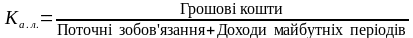 Коефіцієнт абсолютної ліквідності показує, яка частина поточних (короткострокових) зобов'язань може бути погашена негайно. Коефіцієнт розраховується по формулі: