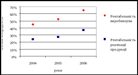 Рисунок 2.7 – Динаміка показників рентабельності виробництва та реалізації продукції