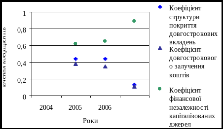 | Коефіцієнт структури покриття довгострокових вкладень | 0,44 | 0,44 | 0,13 | > 1 |