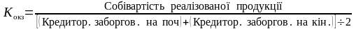 Даний коефіцієнт доповнює попередній. Для його розрахунку необхідно розділити собівартість реалізованої продукції на середньорічну вартість кредиторської заборгованості: