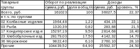 | Показатели | Всего руб. | 02 Колбасные изделия | 03 Рыба | 17 Кондитер-ские изделия | 23 Хлебобулочные изделия | 36 Мороженое | Прочие |