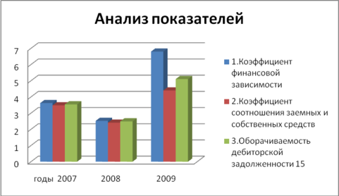 По данным таблицы 8 выполним рисунок 11– коэффициентный анализ показателей за 2007, 2008 и 2009 год.
