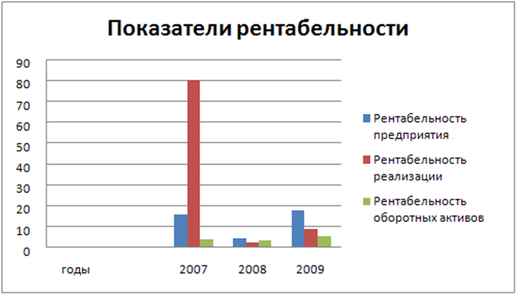 Рисунок 10 - Показатели рентабельности за 2007- 2009 гг.