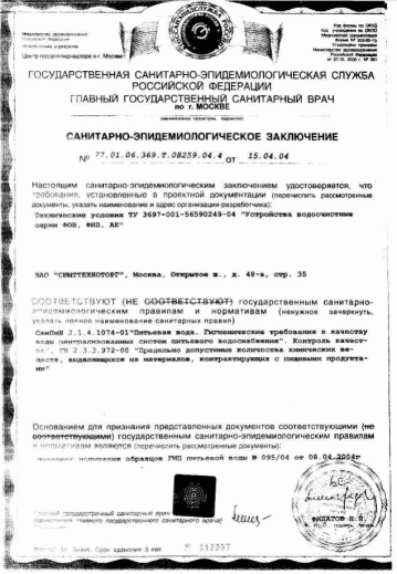 СанПиН 2.1.1074-01. "Питьевая вода. Гигиенические требования к качеству воды централизованных систем питьевого водоснабжения".