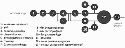 Несмотря на то, что вода из артезианской скважины глубиной более 300 метров, как правило, уже пригодна к употреблению, при прохождении по металлическим трубам она может засориться частицами ржавчины и другими включениями. Поэтому, в любом цехе по розливу питьевой воды установлена целая линия по подготовке, очистке и обеззараживанию.