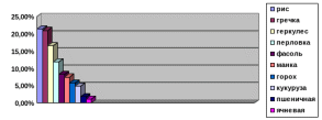 Анализ данных свидетельствует о том, что наибольшим спросом пользуются; рис, гречка, геркулес, перловая крупа.
