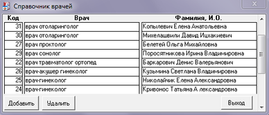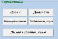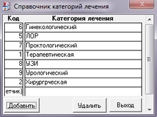 Справочники - это основа работы программы. В системы включены специализированные медицинские (содержит данные о врачах; наименования категорий лечения; список диагнозов; наименование услуги и цена), для использования на всех этапах работы медицинского учреждения. Каждый из них изначально содержит множество понятий, и все доступны для дальнейшей настройки пользователями.