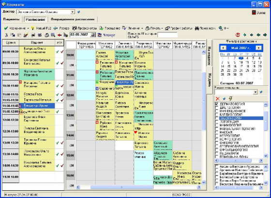 Простой и удобный интерфейс работы с группами пациентов даёт возможность планировать график приёмов на любом рабочем месте, от процедурного кабинета до планирования и учёта операционных списков.