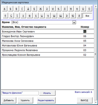 Медицинская информационная система - базовая информационная медицинская система. Может быть использована как в крупных, так и небольших медицинских учреждениях, предназначена для автоматизации медицинских центров, больниц, поликлиник и детских поликлиник. Медицинская система обеспечит автоматизацию работы регистратуры большой поликлиники за счет возможности работы в локальной сети и ведения электронной картотеки пациентов.
