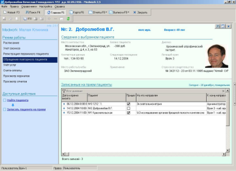 С помощью программы администратор может быстро узнать баланс пациента и историю его платежей и посещений.