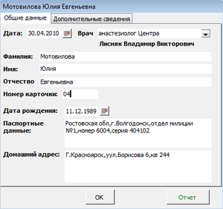 После обследования пациента врач может составить детальный план его лечения или реабилитации. Записи вводятся в дополнительные сведения пациента, позволяющие вносить в план, как отдельные операции, так и шаблоны лечения, привязанные к конкретным диагнозам.