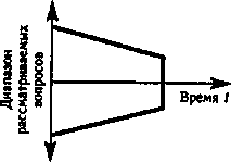 В зависимости от того, на каком уровне управления проводится работа, выбирается диапазон рассматриваемых вопросов. Чем выше уровень управления, тем более долговременные задачи решаются на нем, тем меньше диапазон близких по времени (сегодняшних) задач, тем шире круг задач, связанных с будущим. Поясним сказанное рис. 3.2—3.6.
