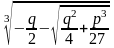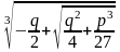 Это и есть формула Кардано. Не лишне заметить, что в таком виде Кардано ее не искал: он формулировал решение уравнений (1) и (2) и рассматривал связь между уравнениями (2) и (3).