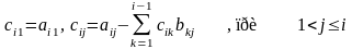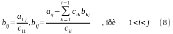 Здесь элементы сij известны, так как матрица А системы (7) считается уже разложенной на произведение двух треугольных матриц С и В.