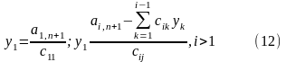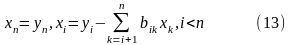 Так как коэффициенты bij определены (8), то значения неизвестных, начиная с последнего, вычисляем по следующим формулам: