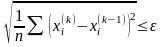 Среднеквадратичную разность необходимо контролировать при выполнении каждых k наперед заданных итераций.
