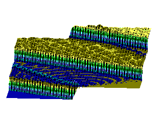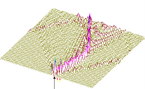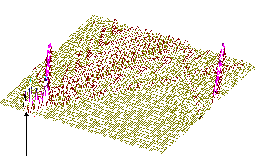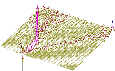 На рис.5,6 (см. ниже) хорошо видно, как при сдвиге области возбуждения солитонной волны от правой нижней части графика налево траектория волны претерпевает существенные изменения, т.е. “словесно-речевое” наполнение ДНК отображается в поведении солитона. Но главное здесь не только и не столько в этом. На этот раз характерно не качание волны около некоторого положения равновесия, а движение ее в левую часть цепочки после определенного временного интервала. В этом видится определенный биологический смысл. Солитон как потенциальный “субъект чтения” ДНК должен “просматривать” протяженные контекстные зоны, а не застревать на одних и тех же “словах”.