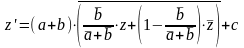 Таким образом, мы представили произвольное аффинное преобразование (2) в виде композиции родства и подобия первого рода. Но возможно представить (2) и в виде композиции родства и подобия второго рода, тогда (2) примет вид