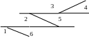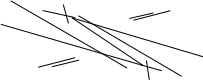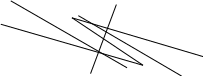 Области 1, 2, 6 и 3, 4, 5, которые были бы разделены при наличии трех прямых, превращаются в единую область в случае одной зигзагообразной линии, т.е. мы теряем четыре области. Так же у нас имеется две параллельные прямые, следовательно, мы теряем еще одну область. Таким образом, если привести все в надлежащий порядок, то все зигзагообразные линии должны пересекаться между собой и точки изломов должны лежать «по ту сторону» пересечений с другими линиями, и мы теряем только пять областей на одну линию. Таким образом,